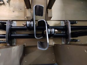 Today we made the rudder control pedal assembly. We started by collecting all the parts, deburring and priming them. Then it was just a matter of checking if the pushrod turned smoothly, which it did, and riveting everything in place. We had to sand of 2 mm from the rudder control stops to prevent them from interfering with the brackets. Luckily this was done pretty quickly in our belt sander. We did make sure that there was still more than 10 mm of overlap between the control stops.