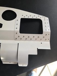 Incidentally, you might have noticed a "gap" in the fasteners located next to the round hole for the engine mount. I intentionally have left those out for the moment until I can locate and install a carbon fiber cover I purchased that will seal off the engine mount to the baffle.