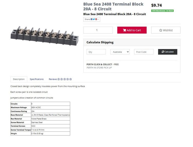 Blue Sea 2408 terminal blocks have M3.5 and 7.9mm wide channels