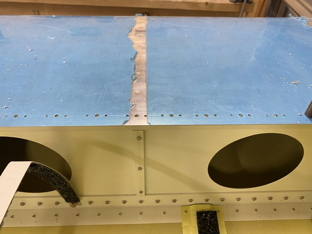 The guide holes around the fuel tanks are already predrilled. I enlarged them to accept the nut-plate guide tool, then drilled the small rivet holes. There’s 98 nut-plates for each tank and so far I’ve done half of the right tank holes. Tomorrow I’ll drill the remainder and then countersink them. I won’t rivet the nut-plates in until the wing skin is closed up.